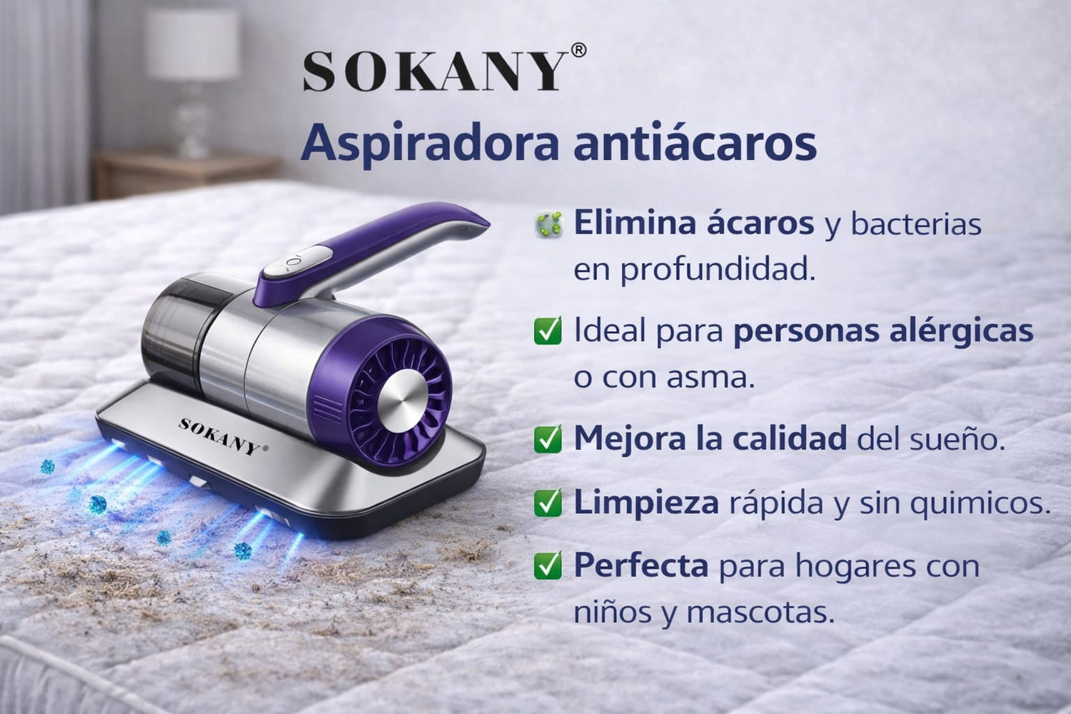 ✔ Elimina ácaros, bacterias a profundida
